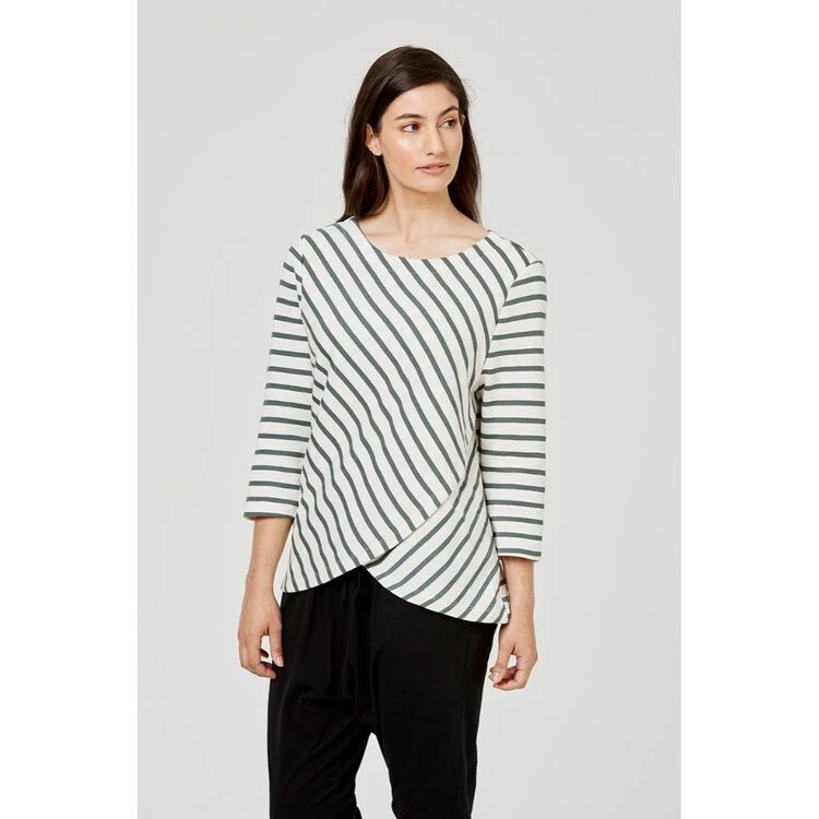 Not just your average sweater, this Anthology Long Sleeve Wrap Front Top features a functional wrap front and striped design, making it stylish and comfortable for going on a quick grocery run or dropping the kids off at school. This top can be easily worn over your favourite Anthology leggings or Drop Crotch Pant for a luxe leisure look.