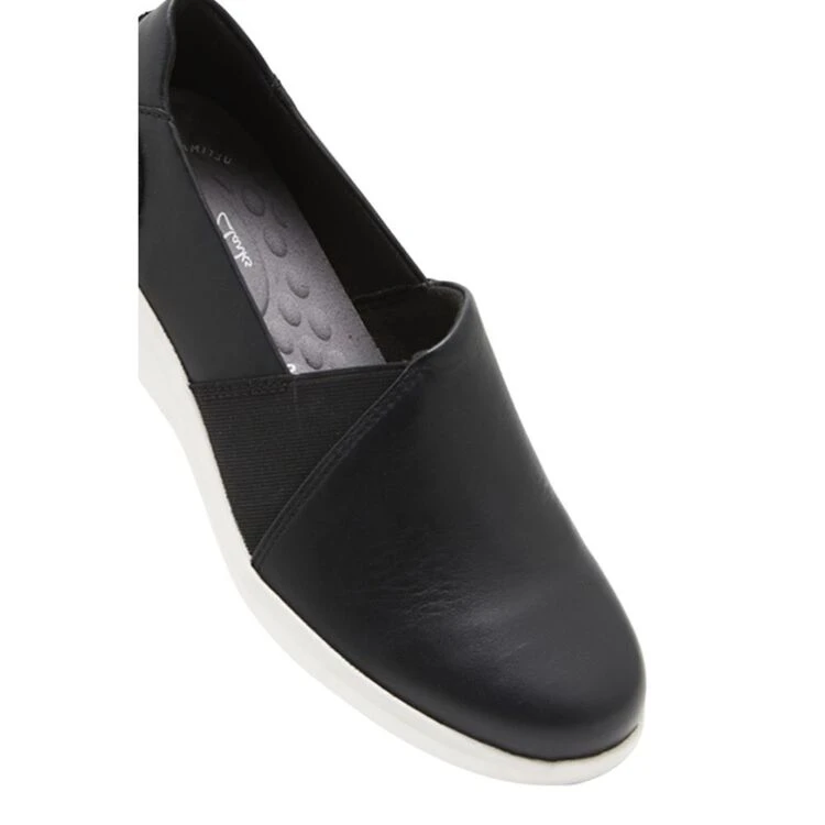 Complement your casual look with the Cloud Steppers By Clarks Kayleigh Step Women’s Slip On, a simple yet stylish design boasting ultimate comfort and support. Moisture wicking and antimicrobial materials will keep your feet cool, dry and bacteria free, while a premium OrthoLite footbed provides all day sole support.