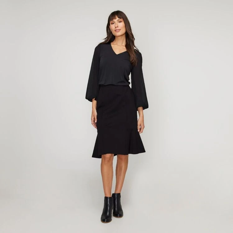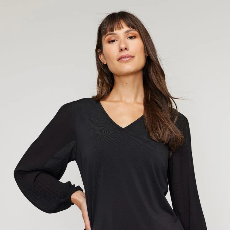 Experience style and comfort with the Jane Lamerton Pleat Front Top. This unique top is exclusively designed for Harris Scarfe by Australian Designer Jane Lamerton and is sure to become your favorite go-to look. Crafted from soft, stretchy jersey fabric for maximum comfort, the Pleat Front Top also features pleated sleeves with elastic cuffs in a beautiful georgette fabric.