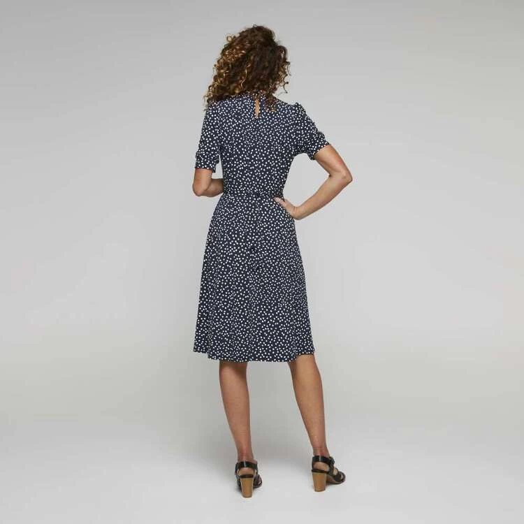 Designed exclusively for Harris Scarfe by Australian Designer Jane Lamerton, the Tie Detail Jersey Dress features a high neck detail with front bodice split, short sleeves and a lovely wrap waist tie that knots up at the back. The perfect desk-to-dinner dress, the skirt falls nicely below the knee. Pair with ballet flats or strappy heels for a cute date outfit!