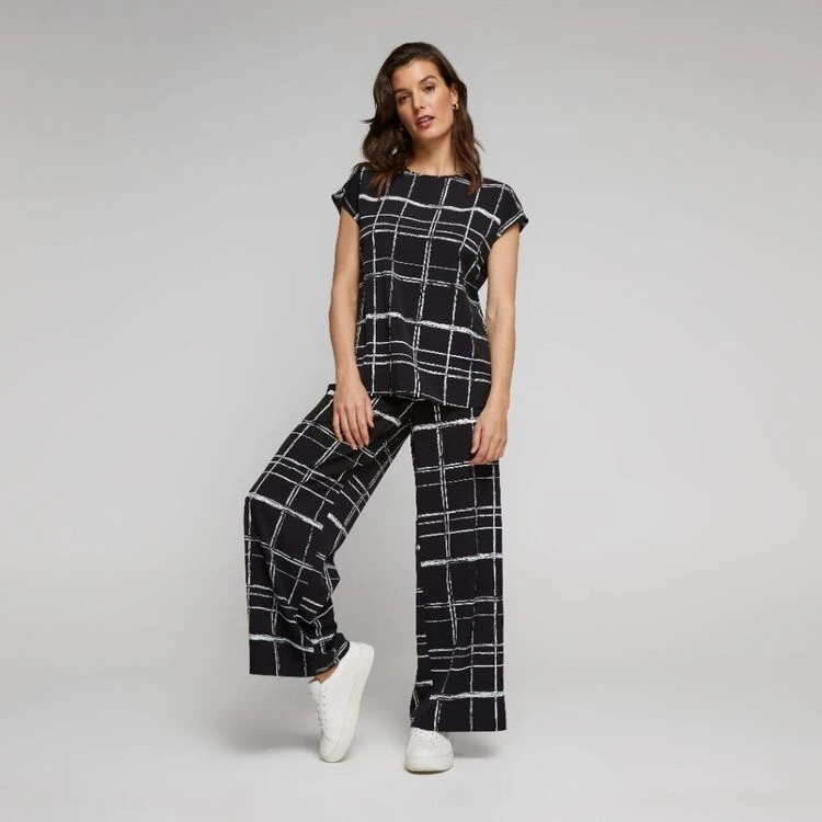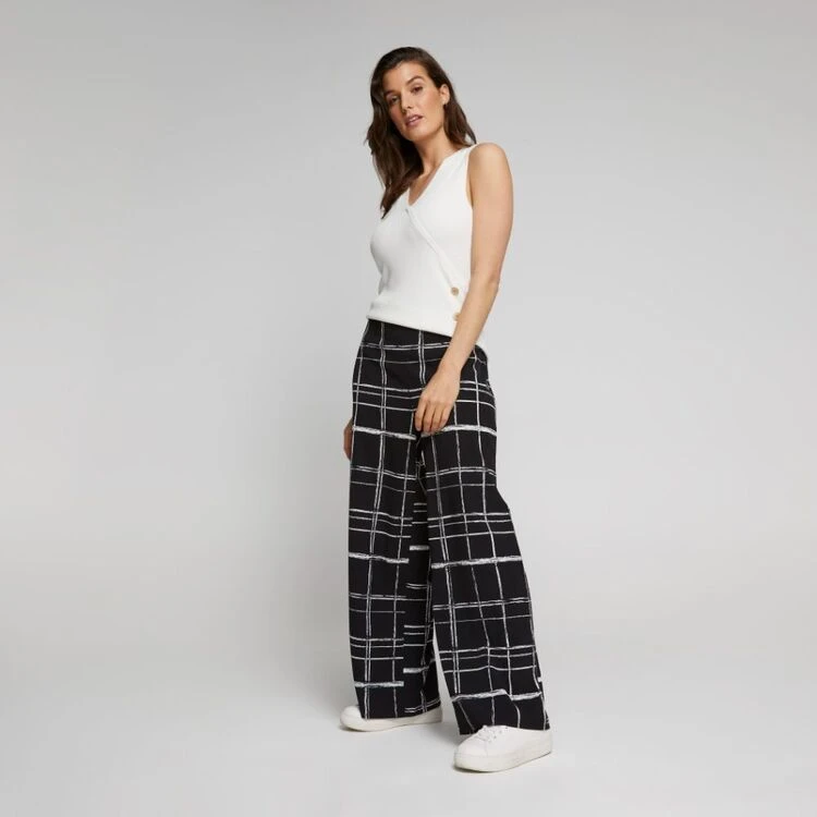 The Jane Lamerton Wide Leg Pant, designed exclusively for Harris Scarfe by Australian Designer Jane Lamerton, is a printed pant that is a great addition to your wardrobe. Featuring a flat, wide waistband, side invisible zip and full wide leg silhouette. Available in Grid Print and can be paired with the Grid Top. Shop the Jane Lamerton range at Harris Scarfe today!