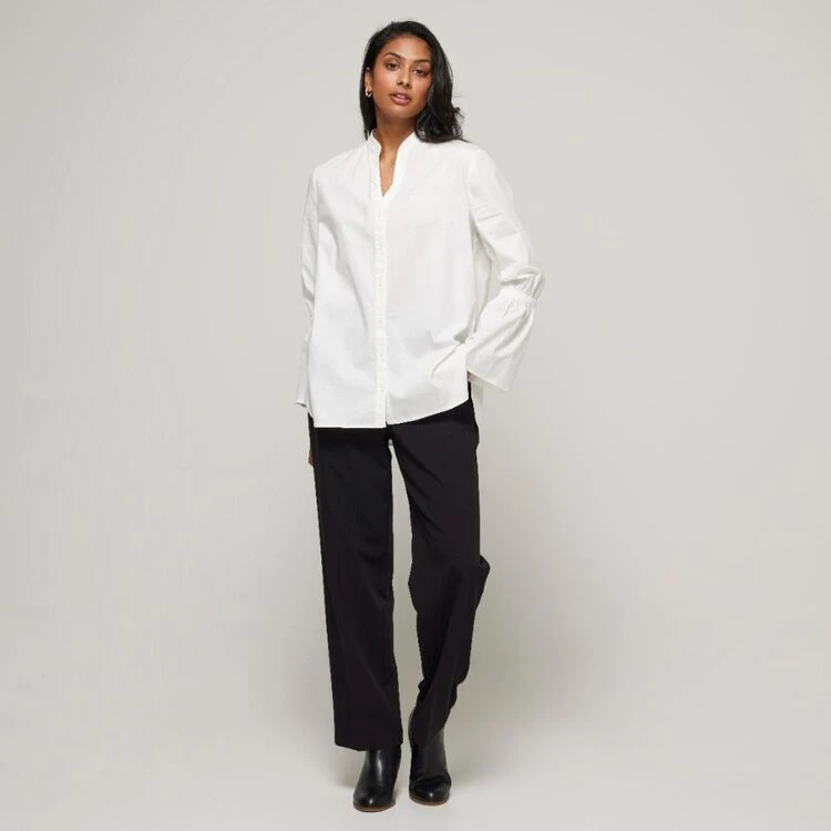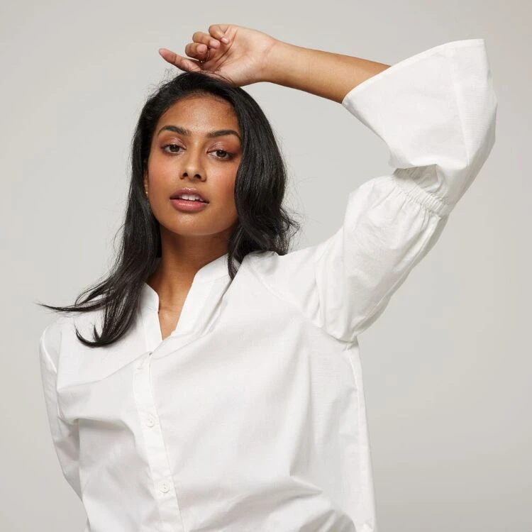 Stay on trend in this beautiful Jayson Brunsdon Flared Sleeve Shirt! Exclusively designed for Harris Scarfe, this regular fit shirt is sure to keep you looking stylish. Featuring a classic collared neck and eye-catching elastic gathered flared sleeve, this shirt is perfect for any occasion. Whether you are looking for something for work or for an evening out, the Jayson Brunsdon Flared Sleeve Shirt will have you looking your best!