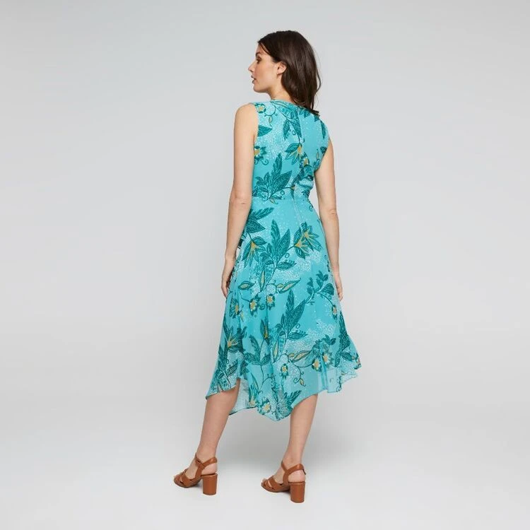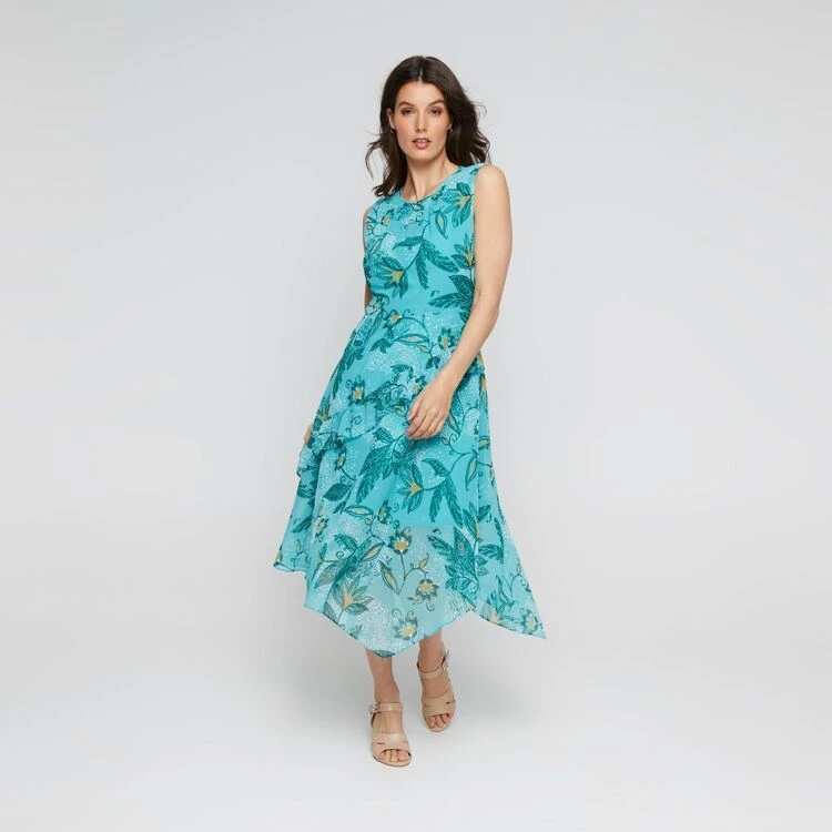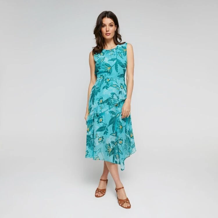 Designed exclusively for Harris Scarfe by Jayson Brunsdon, the JB Jayson Brunsdon Women’s Asymmetrical Ruffle Dress is designed to stand out in a vibrant paisley print. This sleeveless style has a flattering, tiered asymmetrical hem and a waist that is slightly shaped with a back zipper for easy wear.