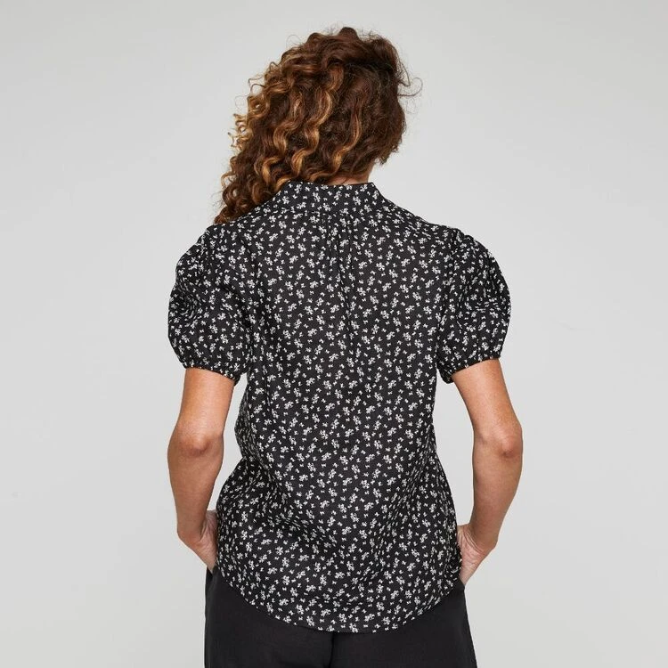 The Khoko Smart Women’s Linen Black Ditsy Blouse is a top you cannot go wrong with. Made out of 100% pure linen, this top is cool, comfortable and stylish. This blouse features a frill hem, puff sleeve and a cute ditsy floral print all over. Mix and match to make various versatile outfit combinations for different occasions.