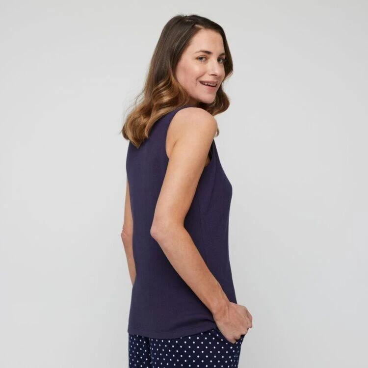 The Sash & Rose Women’s Everyday Cotton Rib Tank Top features a buttoned neck placket and is available in various solid colours, a perfect basic for relaxing at home and being comfortable in bed. This sleeveless top is breathable, lightweight and composed of 100% cotton, perfect for warm nights. Exclusive to Harris Scarfe, Sash & Rose introduces a brand new Summer Sleepwear range that is comfortable and specifically tailored to the needs of our loyal customers. Stay cosy and on trend with Sash & Rose Sleepwear, available in-store and online at Harris Scarfe.