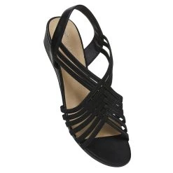 Savannah Angela women’s elastic upper strappy sandal on a low wedge providing great comfort and providing the opportunity to cover all parts of the foot.