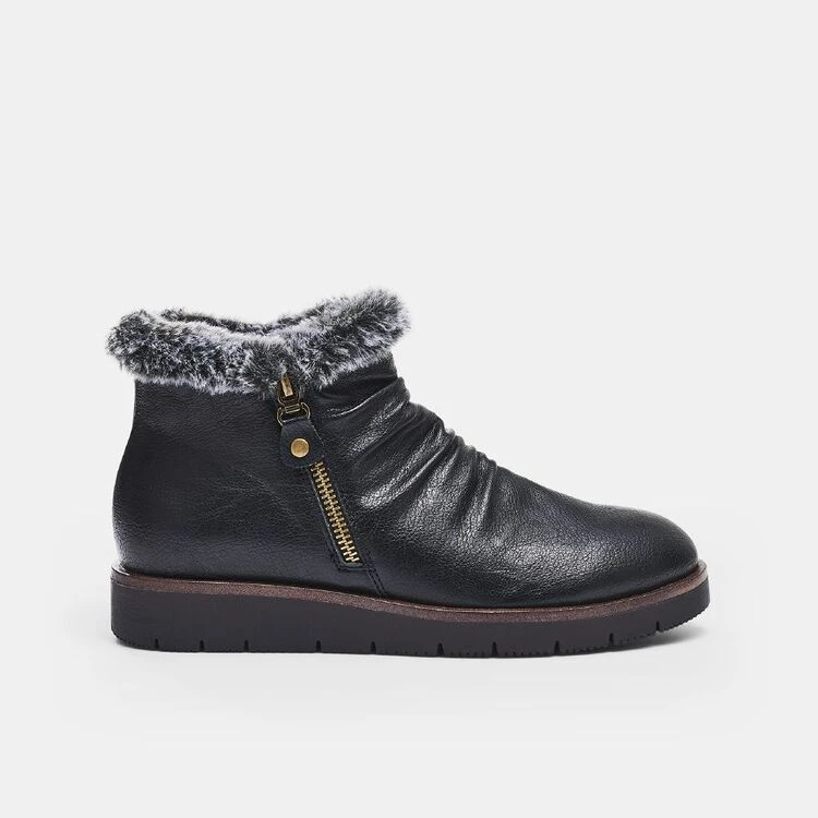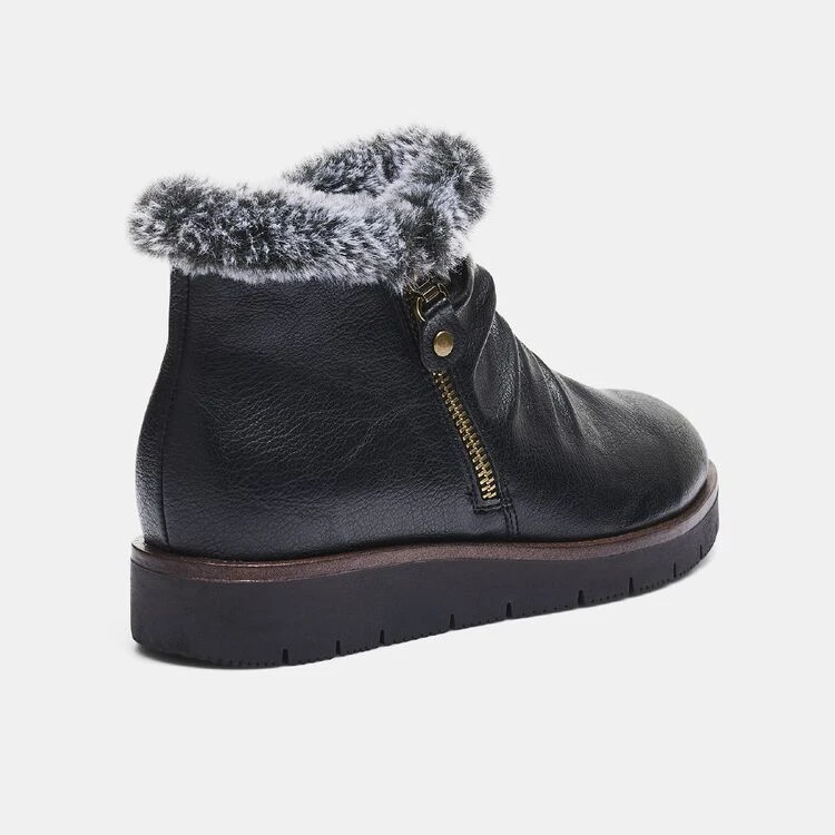 The Savannah Giastar Ankle Boot will be your new favourite winter footwear essential with its stylish fur trim and side zip closure that makes the shoe easy to wear and match with any outfit. This pair is made with a synthetic lining and sole for added comfort and flexibility, as well as a moulded footbed to hold and support your feet in place.